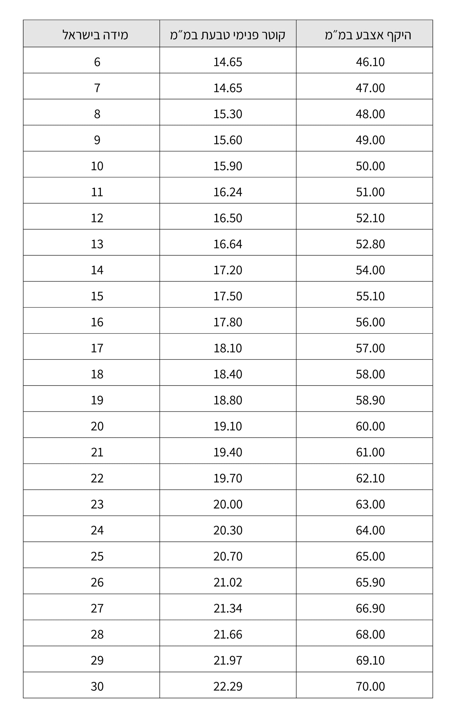 השתמשו במדידה זו כדי לבחור את המידה המתאימה