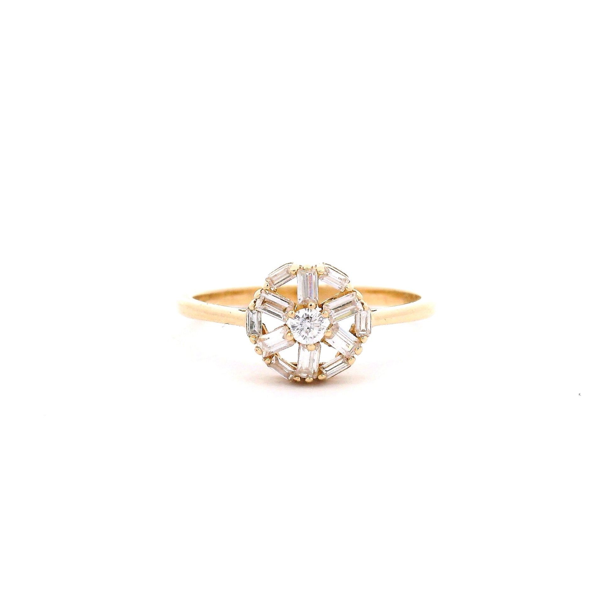 טבעת מדיסון מגיעה בעיצוב ייחודי שמזכיר גלגל משובץ זרקונים עם אבן מרכזית מדהימה