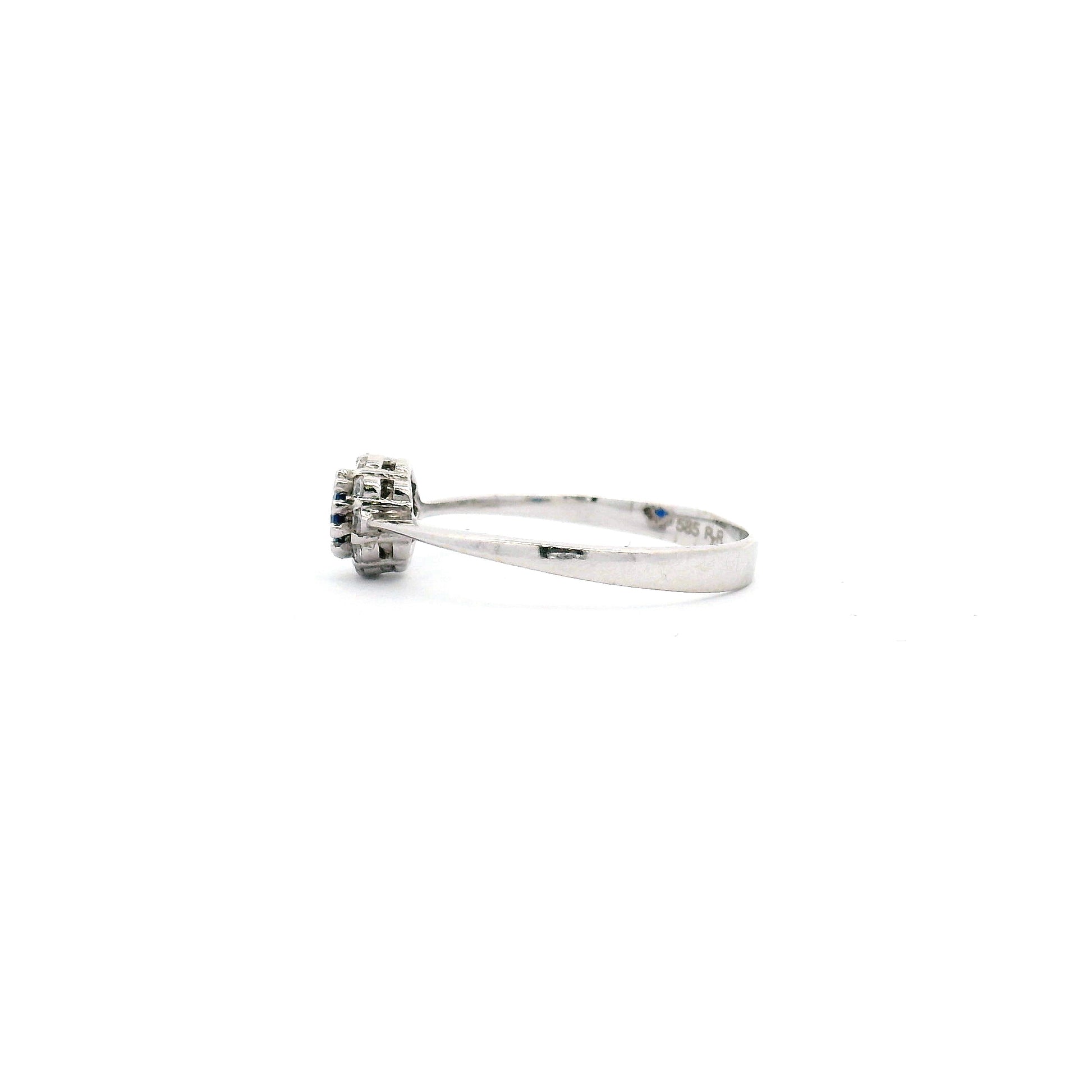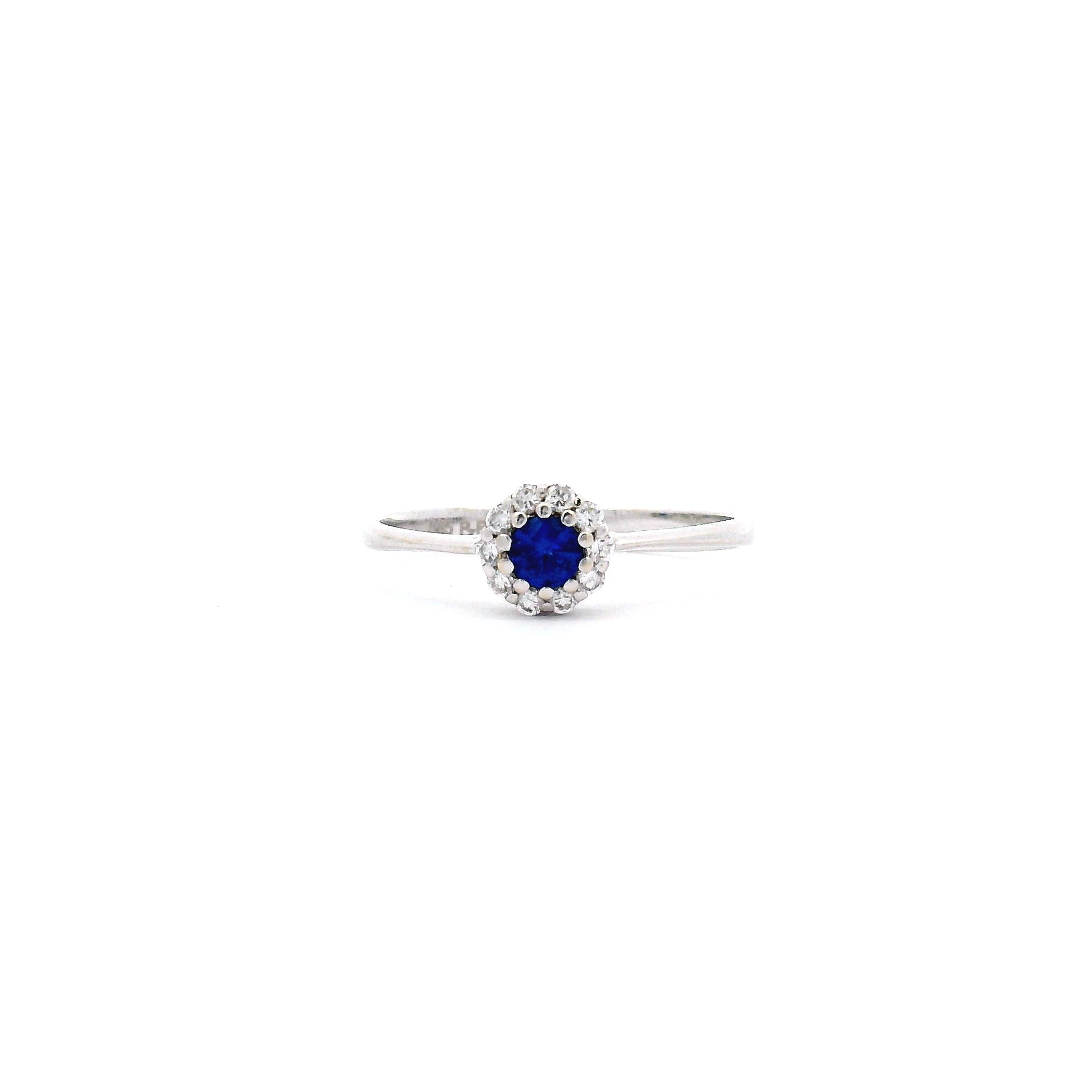 טבעת סול מגיעה בעיצוב עגול עם אבן סינתטית מרכזית כחולה