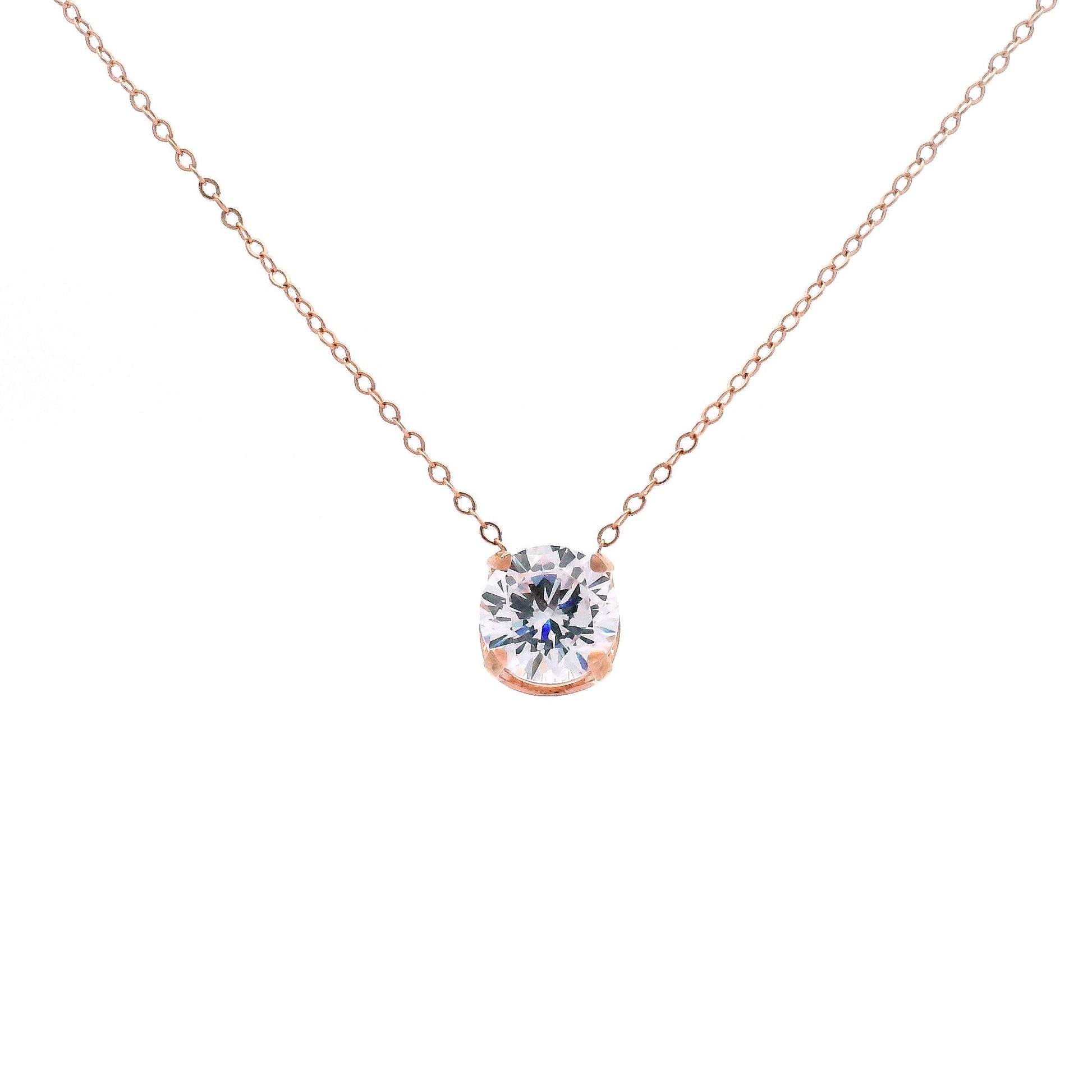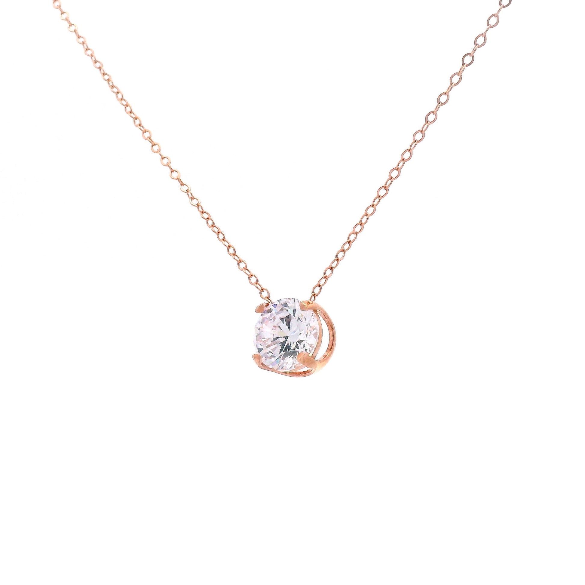 השרשרת שבתמונה היא שרשרת עדינה ואלגנטית, עשויה מתכת בגוון זהב ורוד, עם תליון מרכזי בצורת אבן עגולה בליטוש בריליאנט עגול. האבן מוחזקת על ידי מסגרת עדינה וסימטרית, שמבליטה את הברק והניצוץ שלה.