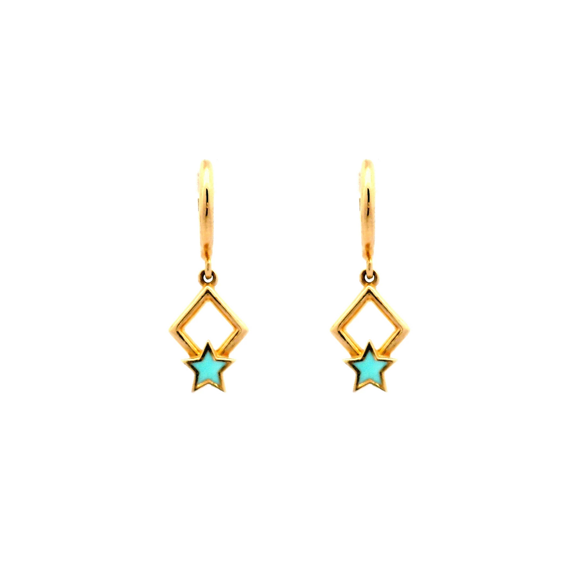 עגילי קאטרין מעוצבים כעגילים נופלים עם כוכבים בצבע טורקיז